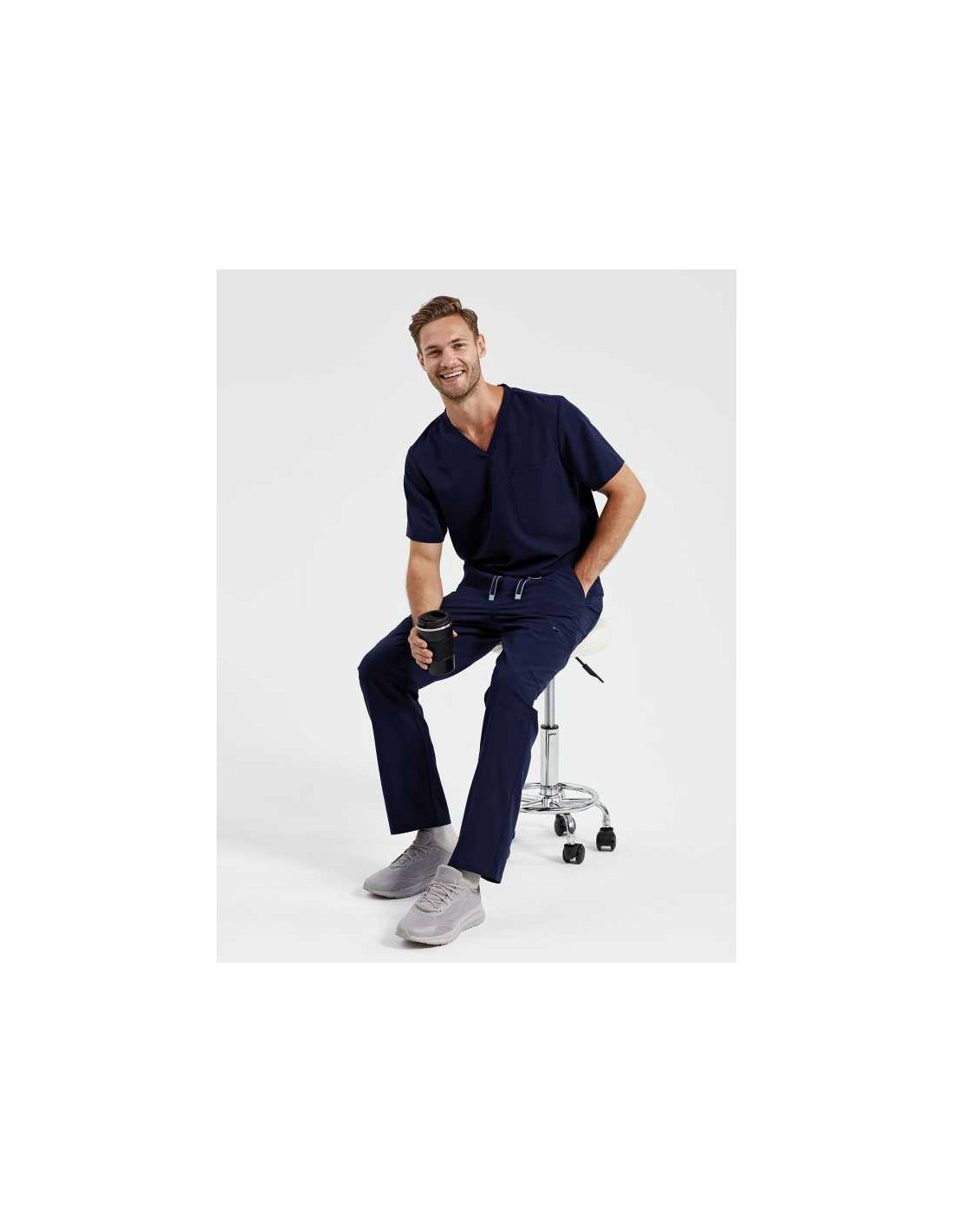 42% poliestere, 33% poliestere riciclato, 19% viscosa, 6% elastan. Pantaloni cargo da uomo in tessuto traspirante elasticizzato in 4 direzioni per assicurare comfort e libertà di movimento durante tutto il giorno, tessuto resistente, ingualcibile e easy care, bottone in vita, coulisse e patta con zip, varie tasche con zip per riporre il cellulare e le monete, spacchetti con orlo per agevolare il movimento.